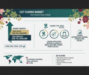 NEWARK, DE, UNITED STATES, February 2, 2026 /EINPresswire.com/ -- The global cut flower market is poised for significant expansion, projected to grow from USD 43.6 billion in 2026 to USD 70.3 billion by 2036, reflecting a compound annual growth rate (CAGR) of 4.9% over the next decade, according to a recent market analysis by Future Market Insights (FMI). This sustained growth is underpinned by consistent demand linked to events, gifting cycles, and institutional consumption, alongside evolving supply chain efficiencies and channel strategies.